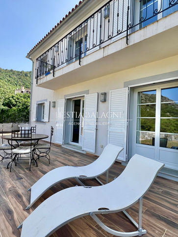 L'agence Hestia Balagne vous propose à la vente, au centre du village de Muro, une magnifique villa de 204m2 sur deux niveaux édifiée sur un terrain de 1127m2 composée comme suit :